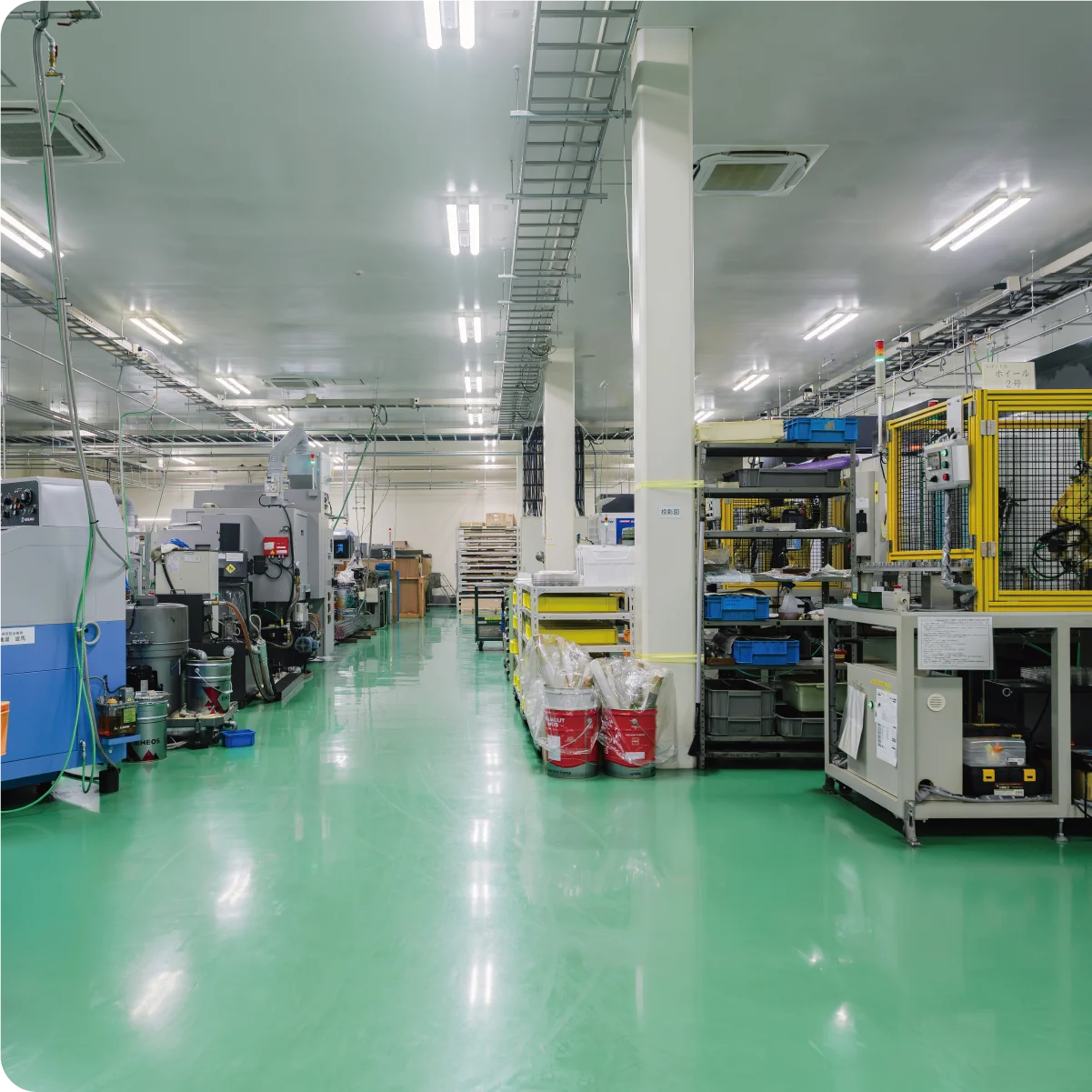 マシニング、レーザー、ワイヤー・プロファイルグラインダー・ベンダー・プレス・放電加工機・細穴放電加工機・NC旋盤・ボール盤・スポット溶接機・円筒研磨等豊富な工作機械を保有しており、精密部品業界での長年の経験を活かし、お客様の仕様・納期・ロットに応じて最適な工法をご提案し、加工いたします。