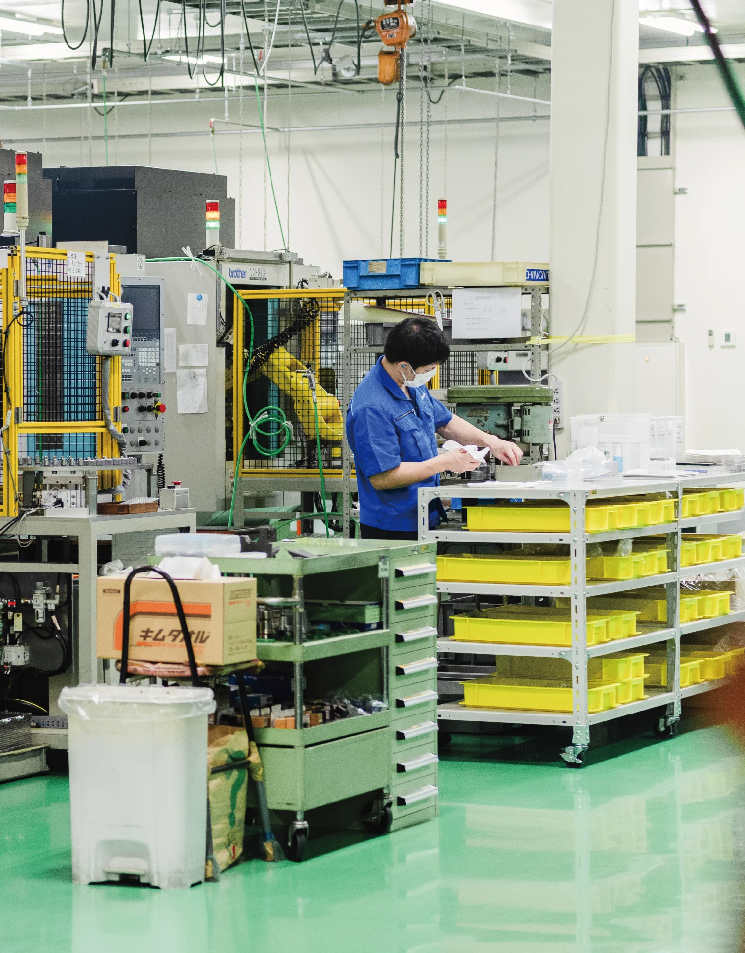 量産部品については自社内にて治工具を作成し、ロボットラインを導入することで工数削減、製品の品質安定化を図っており、お客様の満足度へと貢献しております。